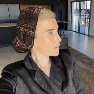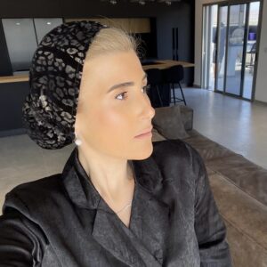 טורבן קטיפה מנוחש עם גומייה תואמת