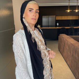 משולש שחור ענק בשילוב פייטים פרנזים זהב