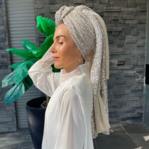 מטפחת משולבת קטיפה שילוב פרנזים-שחור