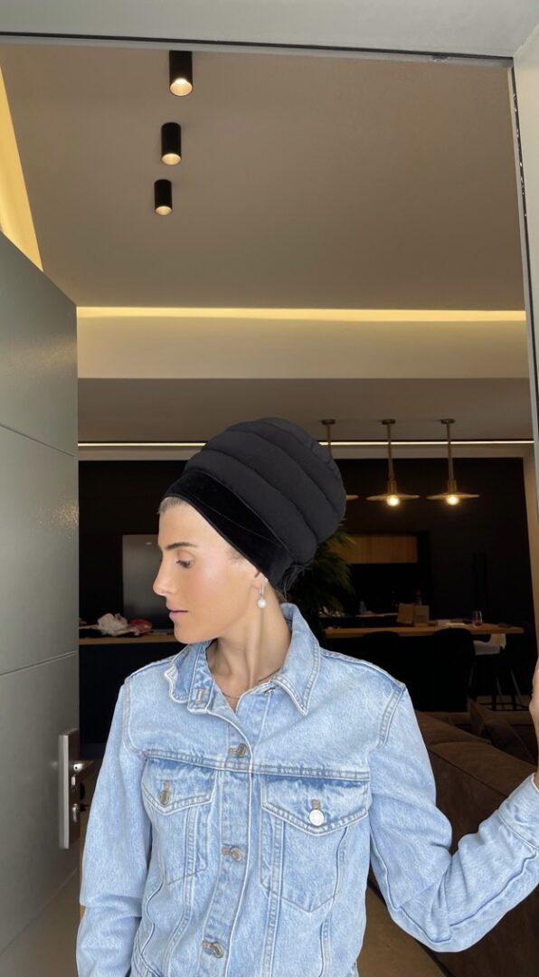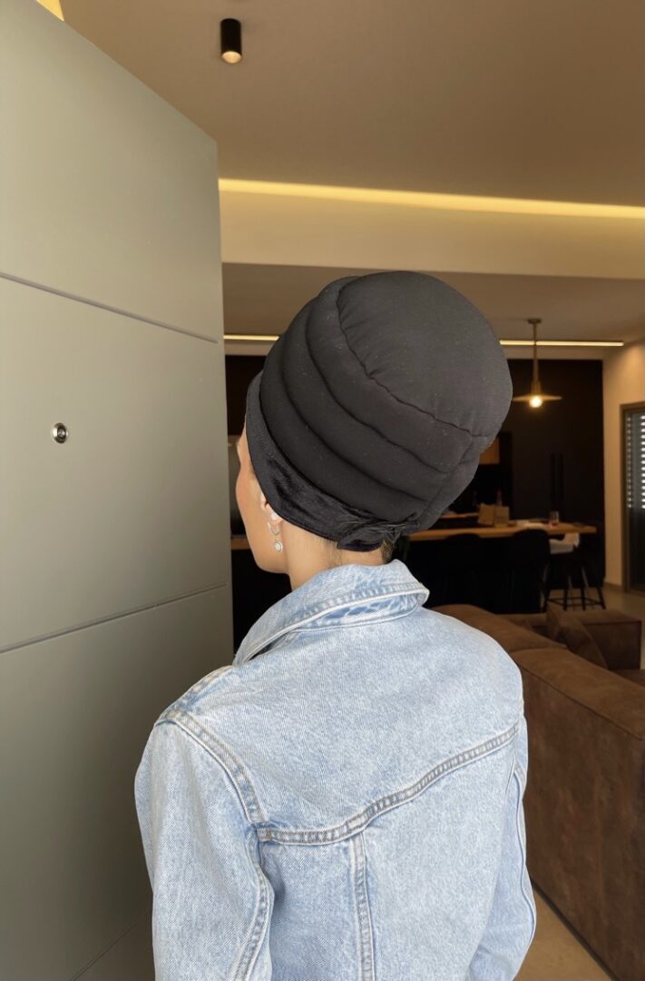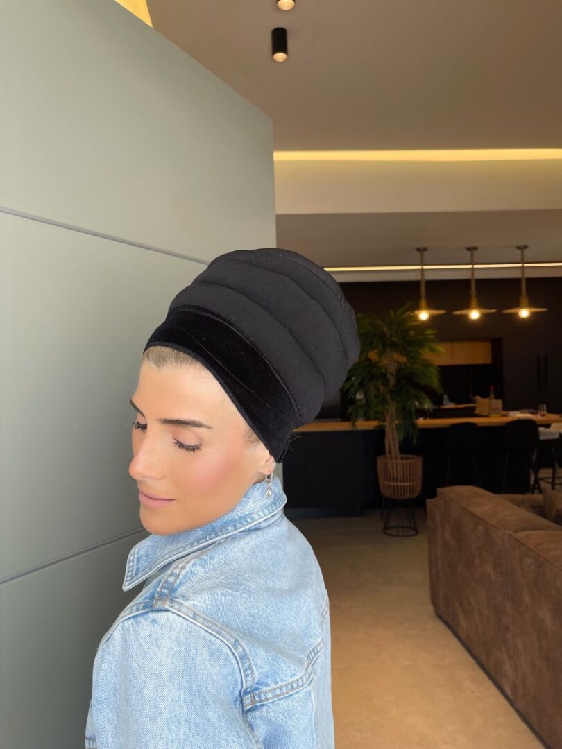 בובו קטיפה 2 שורות עם רצועות-שחור/לבן