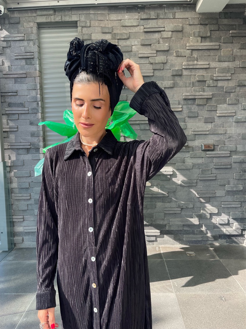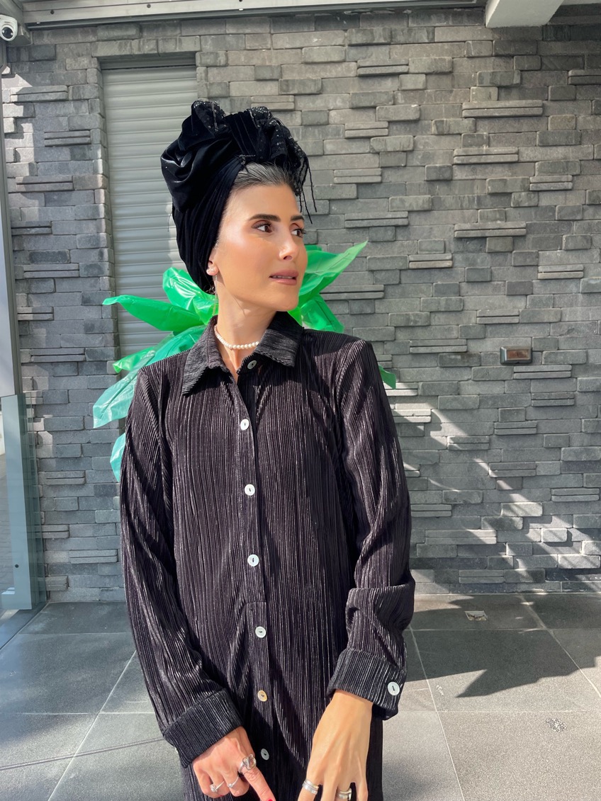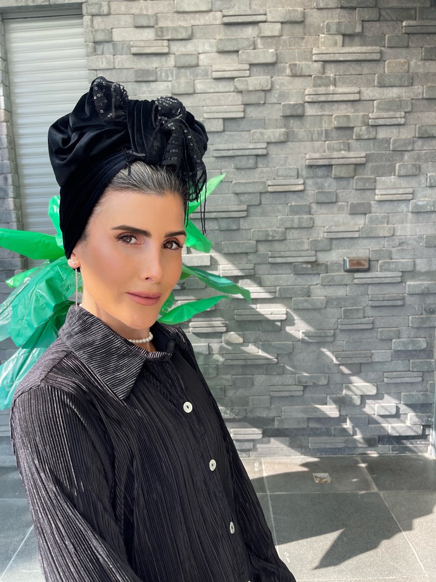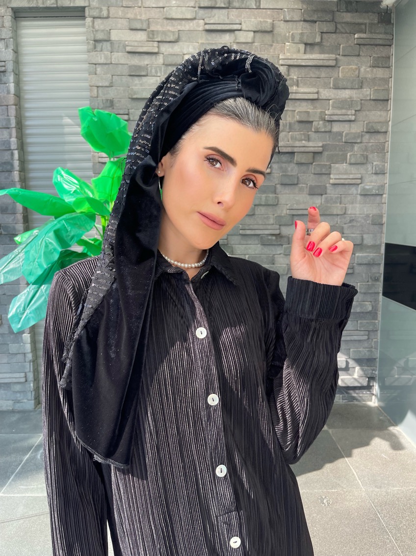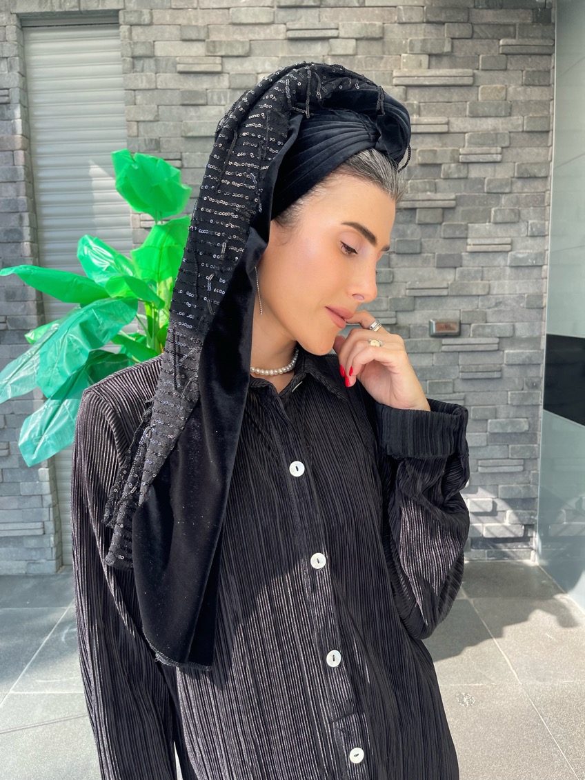 מטפחת משולבת קטיפה שילוב פרנזים-שחור
